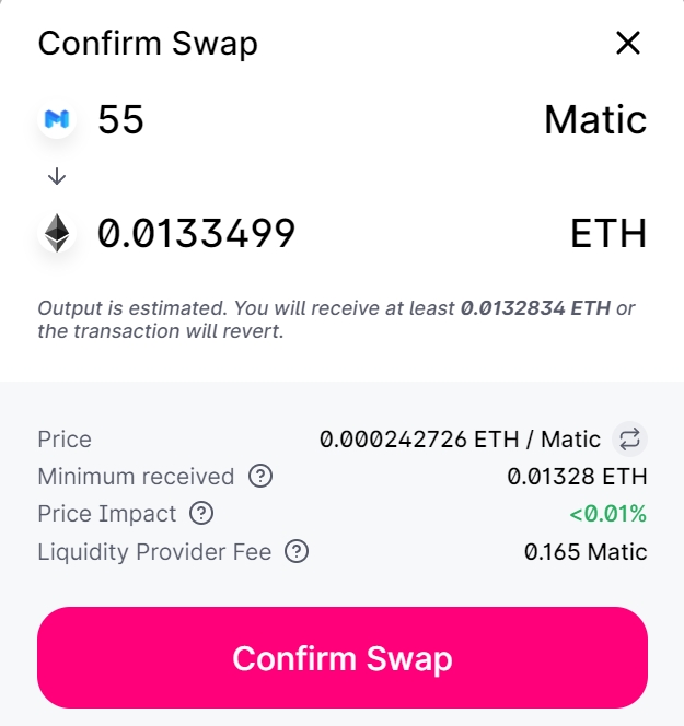 You can confirm that your tokens have been swapped by checking your wallet balance.