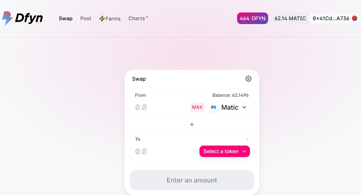 Step 1) Visit https://exchange.dfyn.network/#/dfyn.